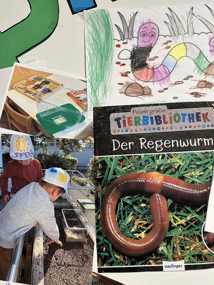 Jetzt warten die Kinder noch auf den großen Regen und hoffen, dass die Regenwürmer dann aus der Erde kommen und sie die Tiere im Garten finden. Die Würmer werden in das Terrarium eingesetzt. Dann können die Kinder die Würmer beobachten und ihre Entdeckungen fotografisch dokumentieren.